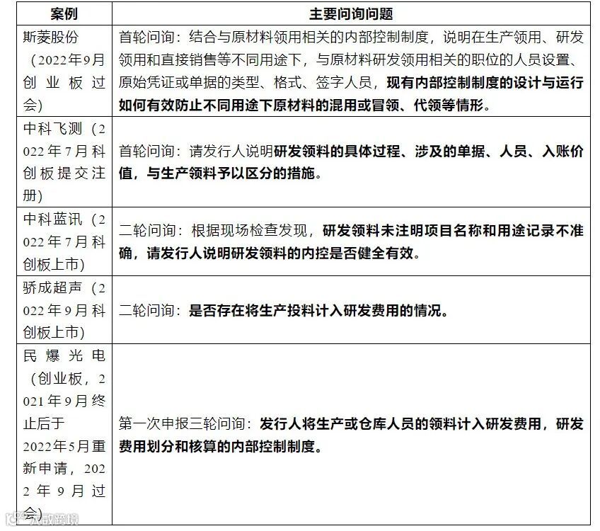 对于传统的制造业企业来说,其研发费用中的研发领料占比往往较高,因此关于研发领料的内部控制以及研发领料的具体投向也成为研发费用领料问题的关注重点。本文围绕研发领料的相关案例审核情况,对于研发领料相关的内部控制以及领料的投向问题做梳理学习。