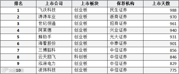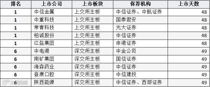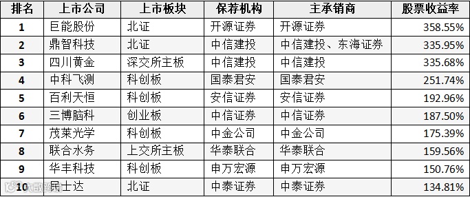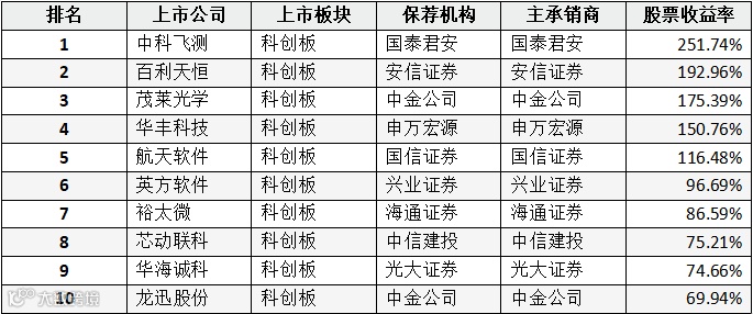 表:A股IPO公司股票收益率排名(前十位)