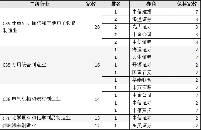 表:A股IPO市场不同行业下券商排名(前五个一级行业)