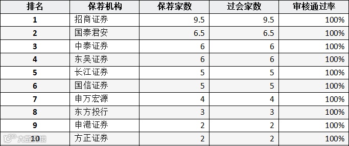 表:A股IPO过会家数券商排名(前十名)