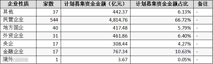 按拟上市公司实际控制人分类统计,截止2023年06月30日,交易所合计在审的687家拟上市公司中,央企、地方国企、金融企业、民营企业、外资控股上市公司、其他分别有17家、40家、17家、544家、31家、37家;计划募集资金总额分别为308.44亿元、417.48亿元、767.34亿元、4,814.76亿元、461.86亿元、442.37亿元。