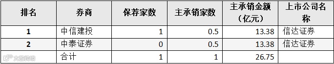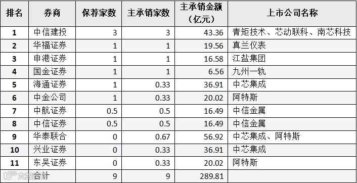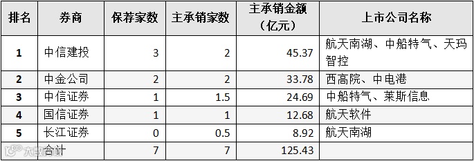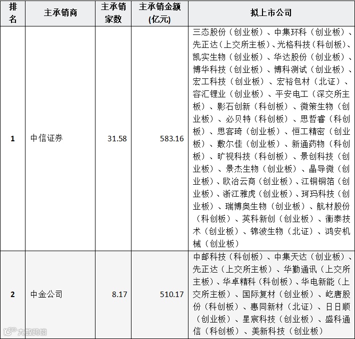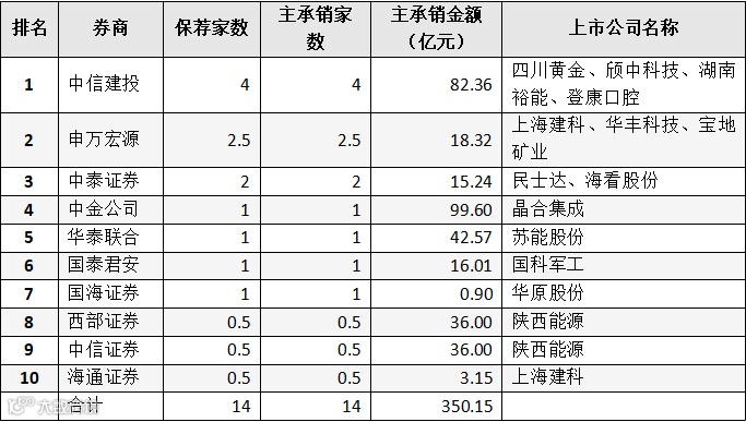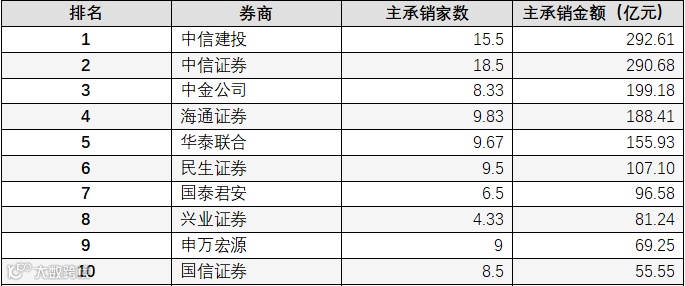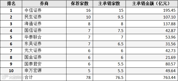 表:券商IPO主承销金额前十名
