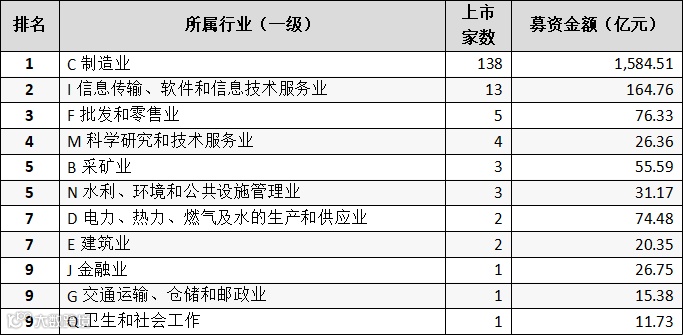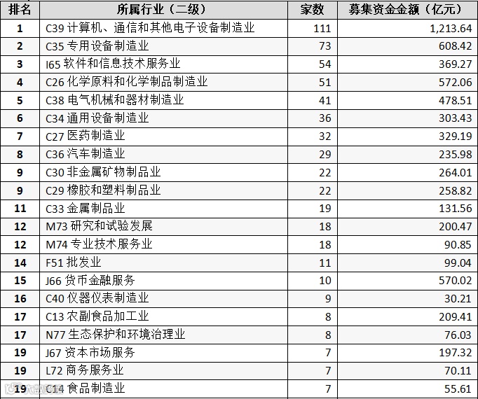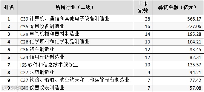 表:A股IPO市场已上市公司行业分布情况(二级行业前十名)
