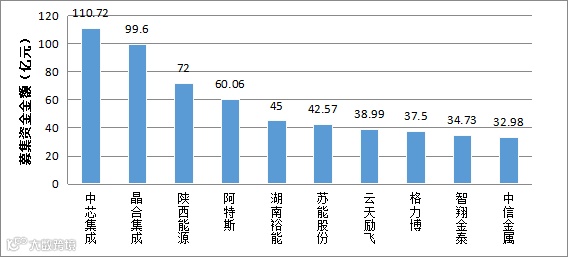 图:A股IPO市场已上市公司募集资金金额情况(前十名)