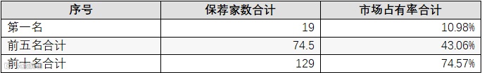 从市场集中度来看,保荐机构中信证券的市场占有率为10.98%,前5大保荐机构合计市场占有率43.06%,市场集中度依然处于较高位。