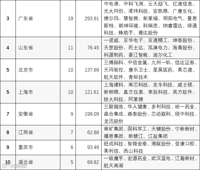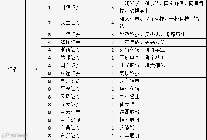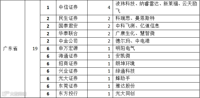 表:A股IPO市场券商区域排名(前三个省)