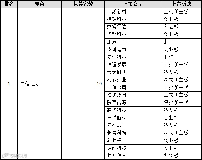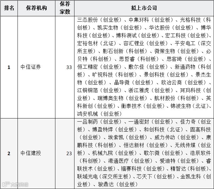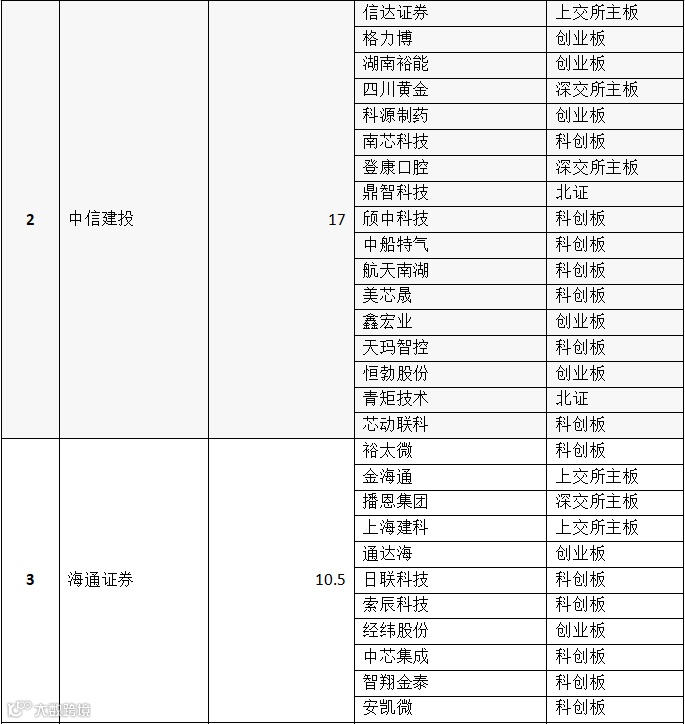 表:券商IPO保荐家数前三名