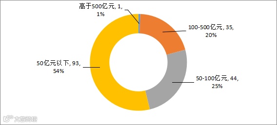 图:A股IPO市场已上市公司募资金额分布情况