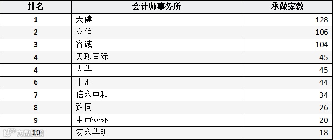 表:2023年上半年会计事务所在审家数排名(前十名)