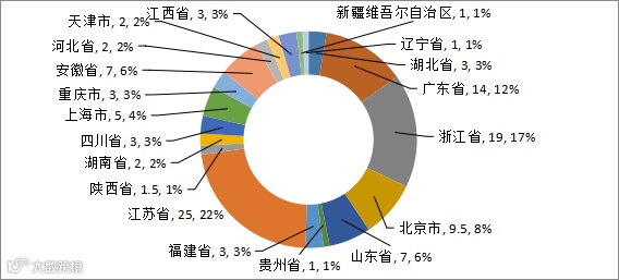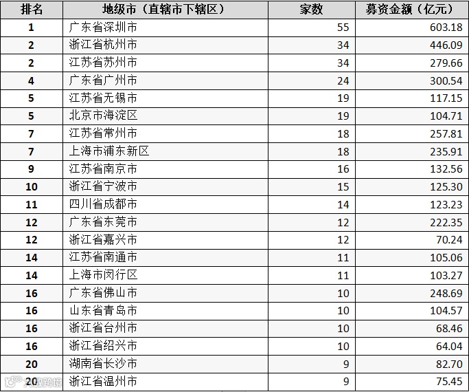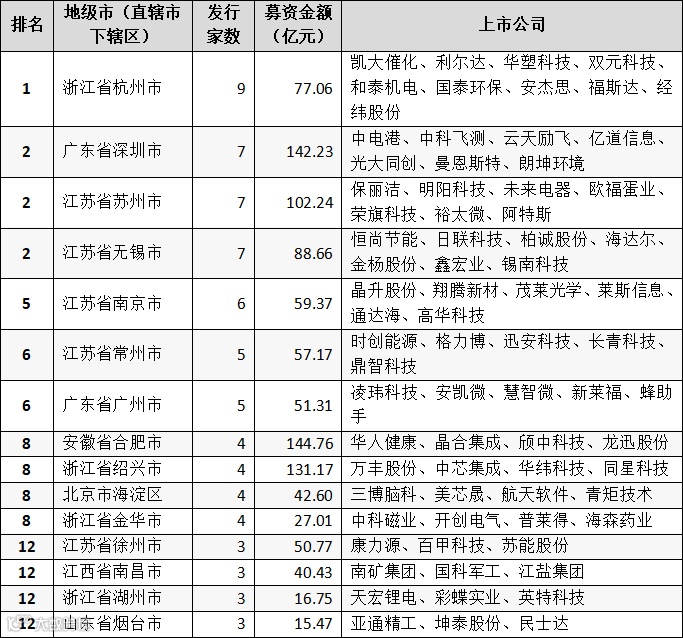 从地级市(区)来看,广东省深圳市、浙江省杭州市、江苏省苏州市分别有55家、34家、34家公司在审,位居前三。