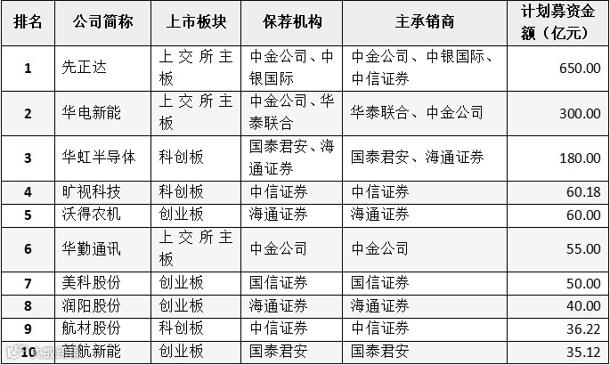 表:截止2023年06月30日已过会待上市IPO计划募资金额排名(前十名)