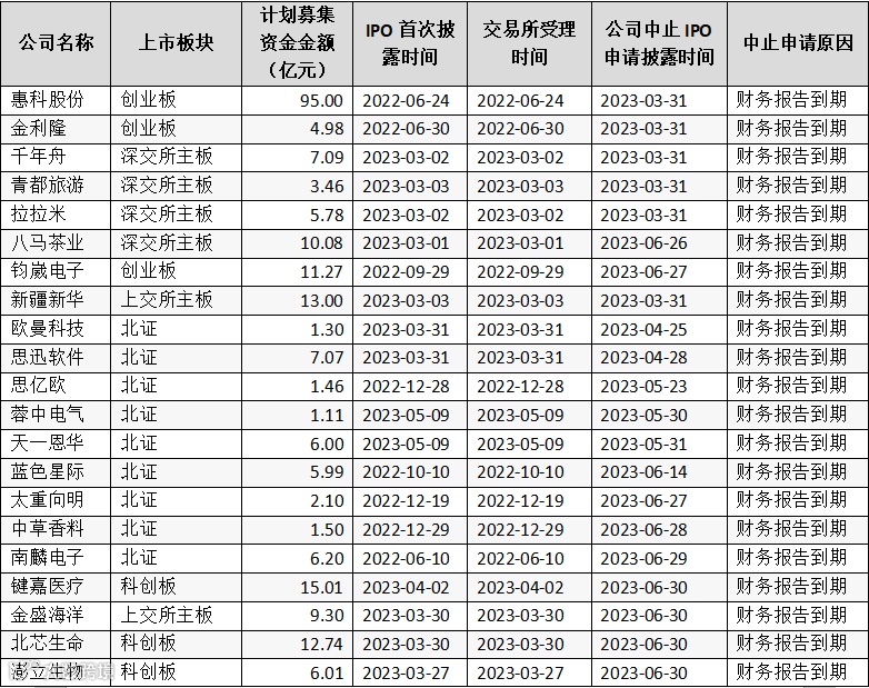 表:A股IPO市场终止撤回申请情况(罗列部分)