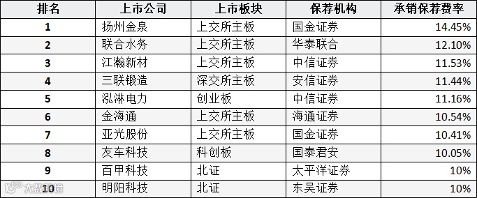 表:券商IPO承销保荐费率排名表(前十名)