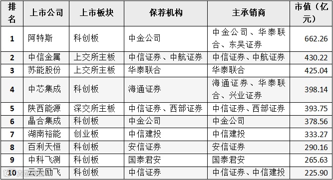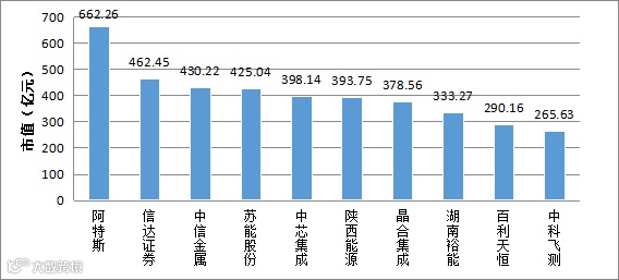 图:A股IPO市场已上市公司市值情况(前十名)