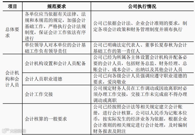 以下是IPO公司全面对照《会计基础工作规范》披露其执行情况的案例。