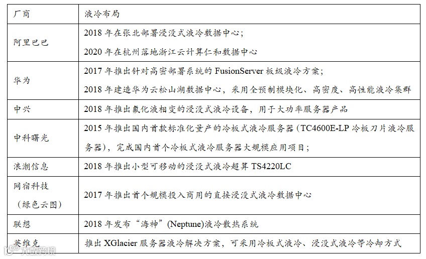 表1 国内液冷服务器发展