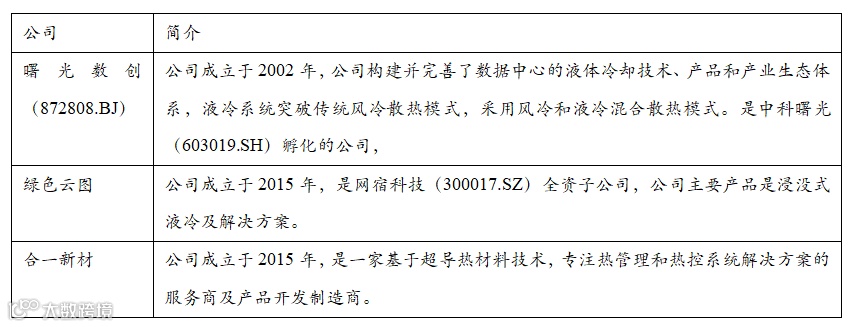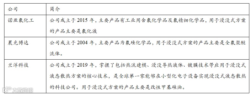 表3 双相浸没式方案标的公司