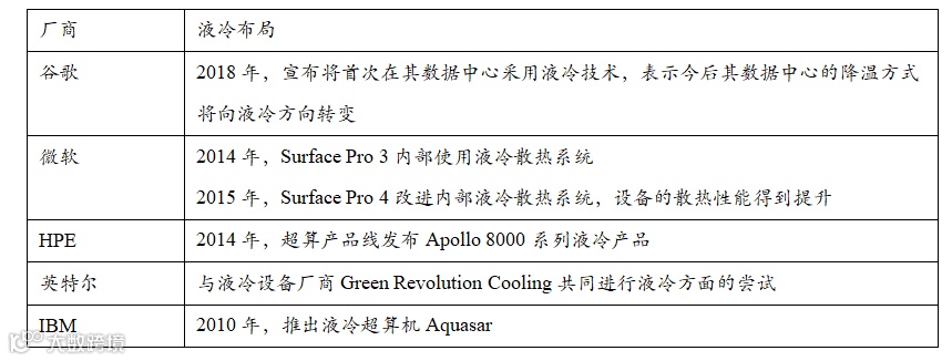 IBM、微软、谷歌、英特尔和HPE等多家公司相继发布多款液冷服务器,技术水平及布局进度快于我国。