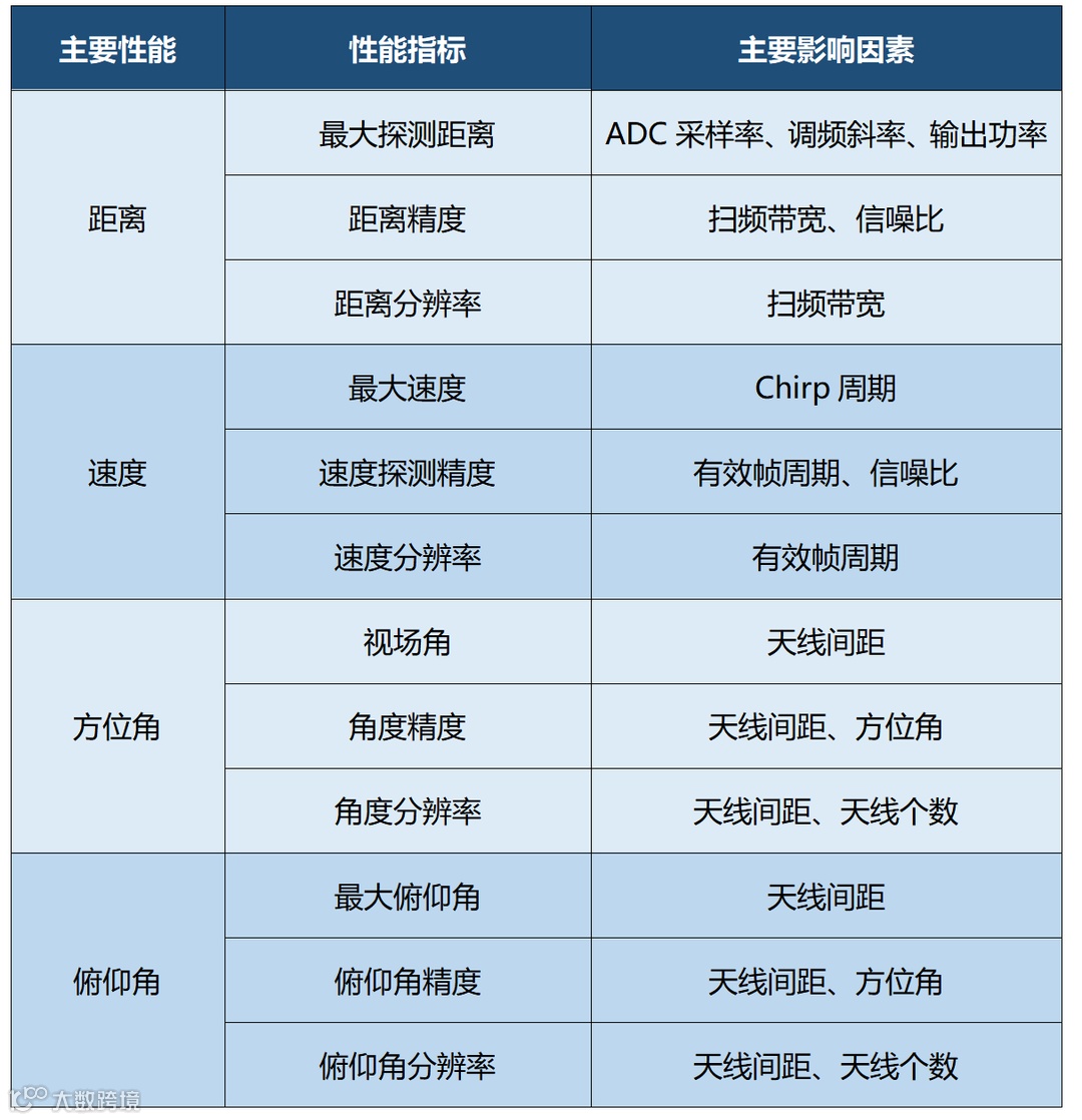 表3 毫米波雷达性能指标及主要影响因素(信息来源:慧博资讯)
