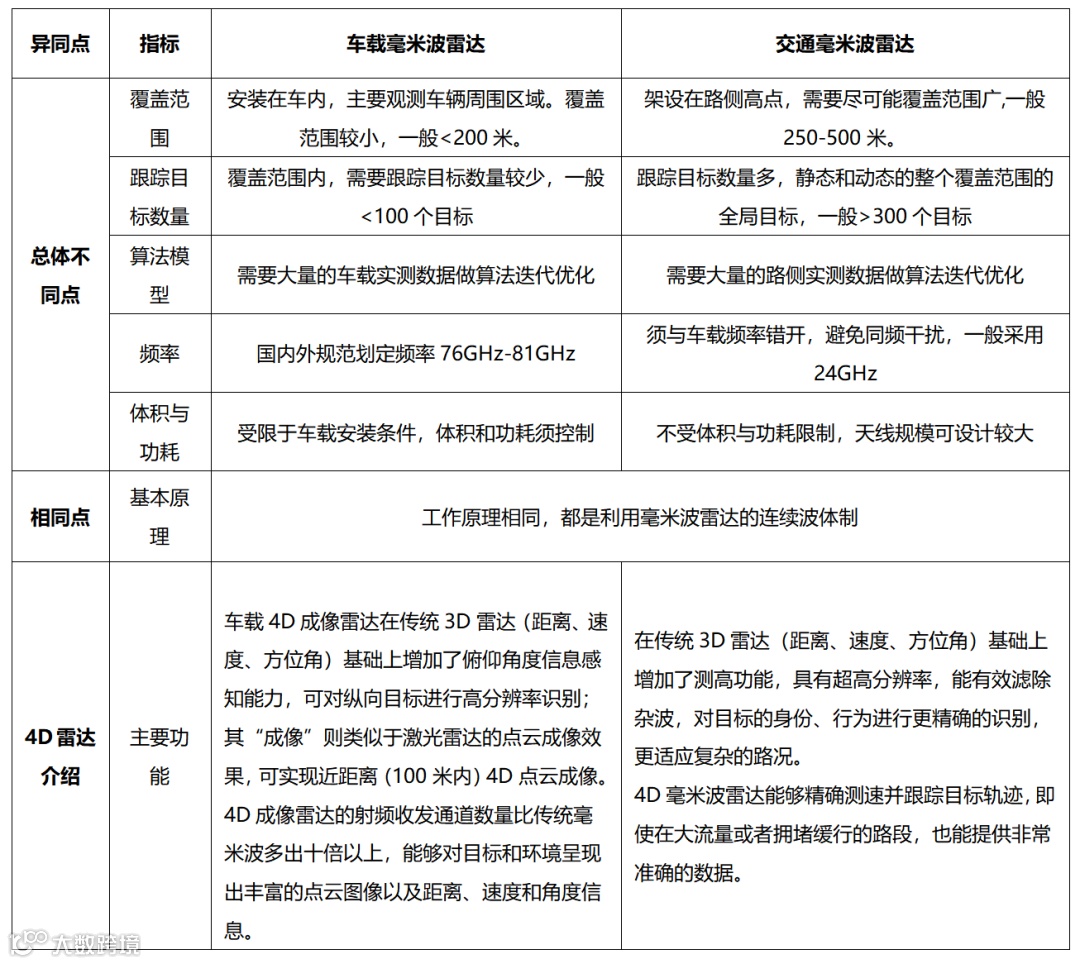 表2:车载毫米波雷达和交通毫米波雷达比较
