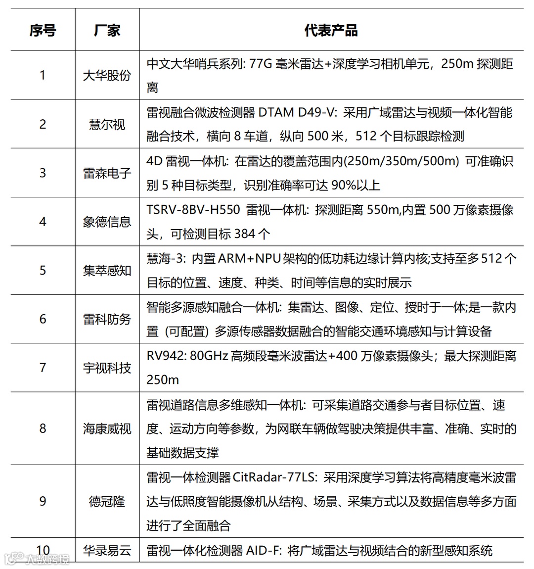 表4 国内市场主要玩家及代表产品(信息来源:佐思汽研)