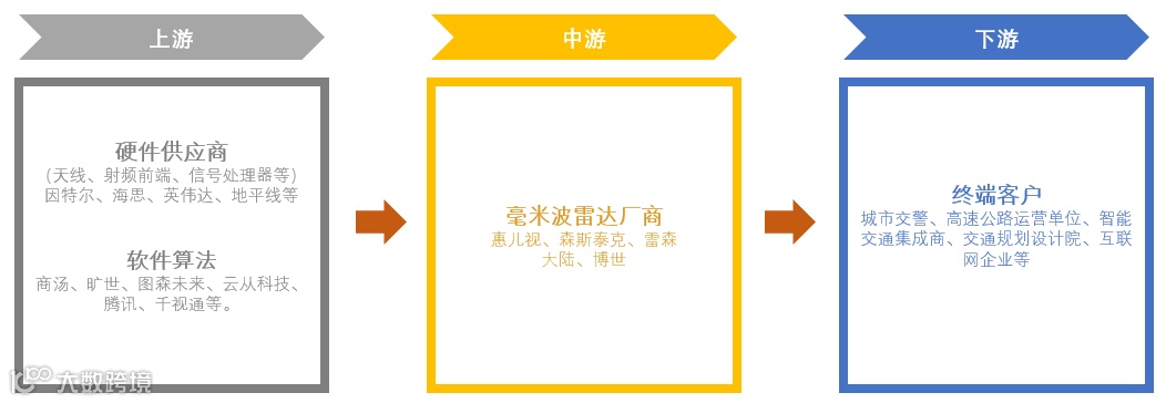 中游为毫米波雷达厂商,包括以雷森、慧尔视、森思泰克为代表的国内毫米波雷达厂商,以及大陆、博世等国外毫米波雷达厂商。