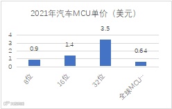 根据Omdia和IC Insights数据,2021年8位、16位、32位MCU在汽车MCU领域销量占比分别为19%、36%和45%,销售额占比分别为8%、22%和70%,单价分别为0.9、1.4和3.5美元且显著高于全球MCU均价0.64美元。