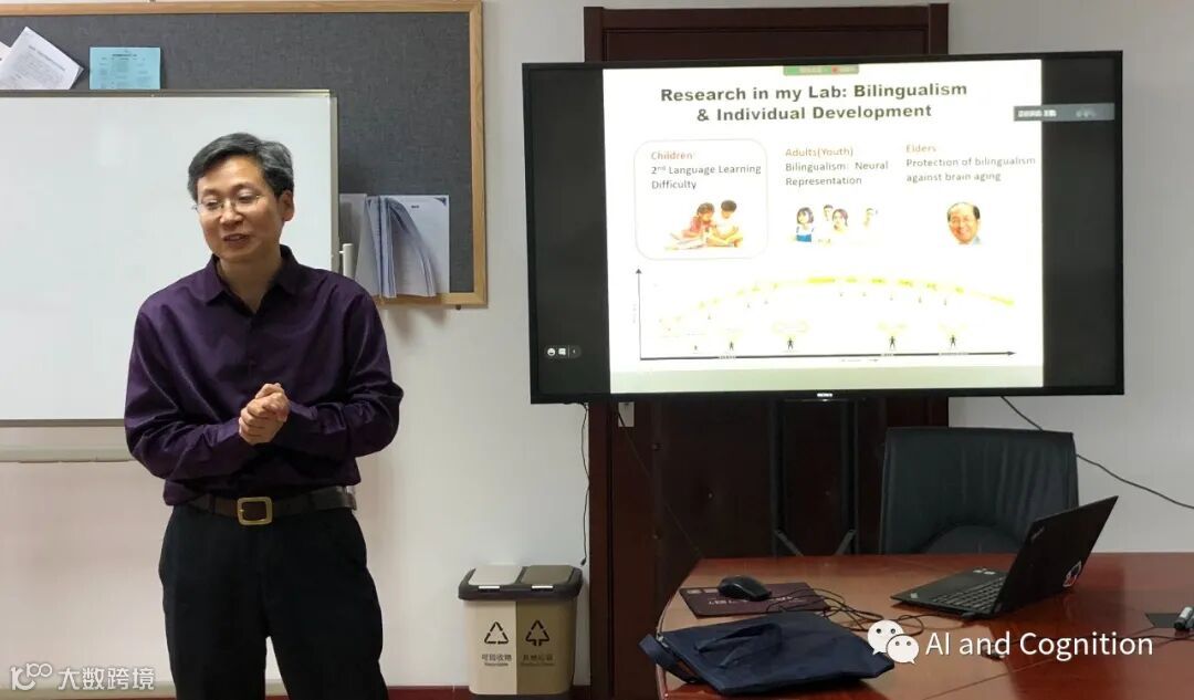 在其后的儿童干预研究中,通过对汉语儿童在完成Fast For Word软件(基于英语音位的练习)训练前后的对比,丁教授团队发现,在英语音位匹配任务中,被试在左侧IPL上的BOLD信号增强,但在左侧STG(颞上回)上没有改变;而在同时测试的英语正字法匹配任务、汉语音位匹配任务中,两个脑区的信号却都没有显著改变。该研究进一步验证了左侧IPL脑区在二语音位加工上的可能独特作用。在对语言学习障碍儿童的研究中,丁教授早期的研究曾发现学习障碍儿童在二语(英语)音位任务上角回(AG,广义IPL的一部分)的BOLD信号明显低于正常儿童。而在近期针对存在汉语/英语双语学习障碍儿童、仅仅二语学习障碍儿童的研究中,他们进一步发现二语学习障碍群体相比正常儿童在左侧缘上回(SMG,广义IPL的一部分)的灰质增加,且该脑区与英语阅读水平相关,但与汉语阅读水平并不相关。而进一步的VBM研究也证明了上述联系。综合来看,丁教授认为,虽然左侧IPL在语言加工中的作用在诸多研究中已被证实,但左侧IPL的前部在二语学习中的作用,它与其他脑区所形成的网络应该值得学者们进一步的思考与探索。讲座结束后,丁教授回答了我校师生关于IPL在大脑默认网络中的作用以及负激活问题、汉语加工的特定脑区假设问题、fMRI数据分析方法本身可能造成的问题、学习障碍儿童的检测与实验问题、汉语与英语语义加工过程不同(有无空格)可能带来的问题等。