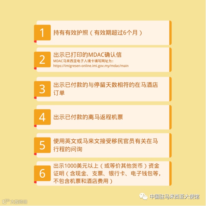 二、为确保来马中国公民入出境顺畅,中国驻马来西亚大使馆在此温馨提醒如下: