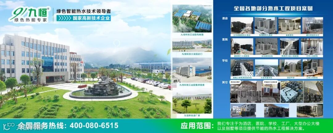 九恒新能源堪称中国空气能行业的“科技全能冠军”和“低温热泵核心制造企业”,具有六大系列产品:商用热泵热水机、家用空气能热水器、低温热泵集中供暖机组、直流变频分户供暖机组,高温烘干机组、泳池恒温机组等。公司位列国内空气能专业制造十强,在远程智能云控制技术、低温强热技术、变频多功能技术、高温热泵技术等领域创新研发走在行业前列。