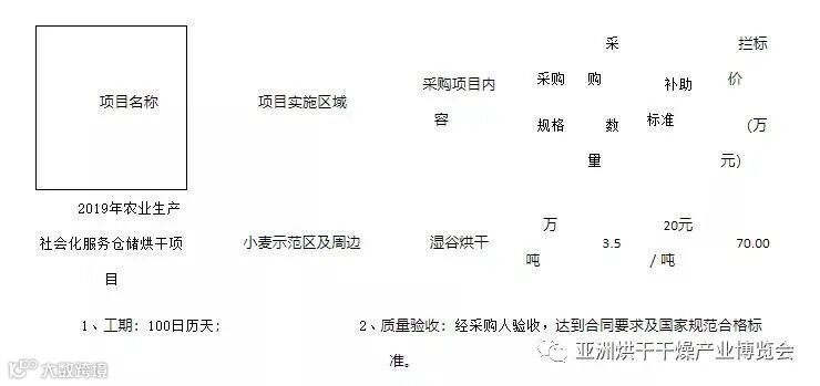 项目名称:2019年农业生产社会化服务仓储烘干项目