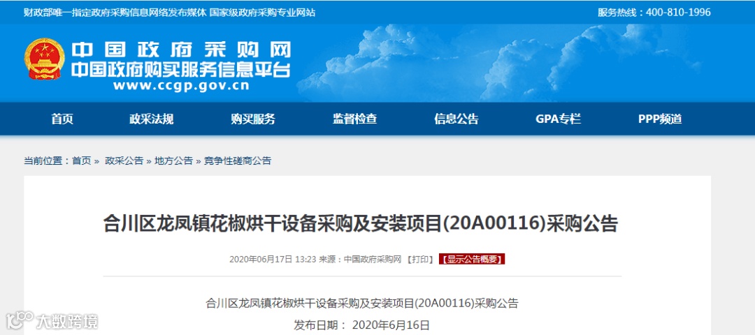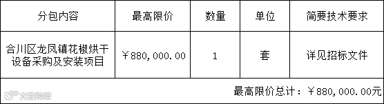 合川区龙凤镇花椒烘干设备采购及安装项目