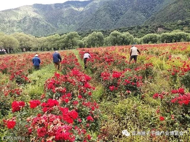 (藏民在采摘新鲜玫瑰花)