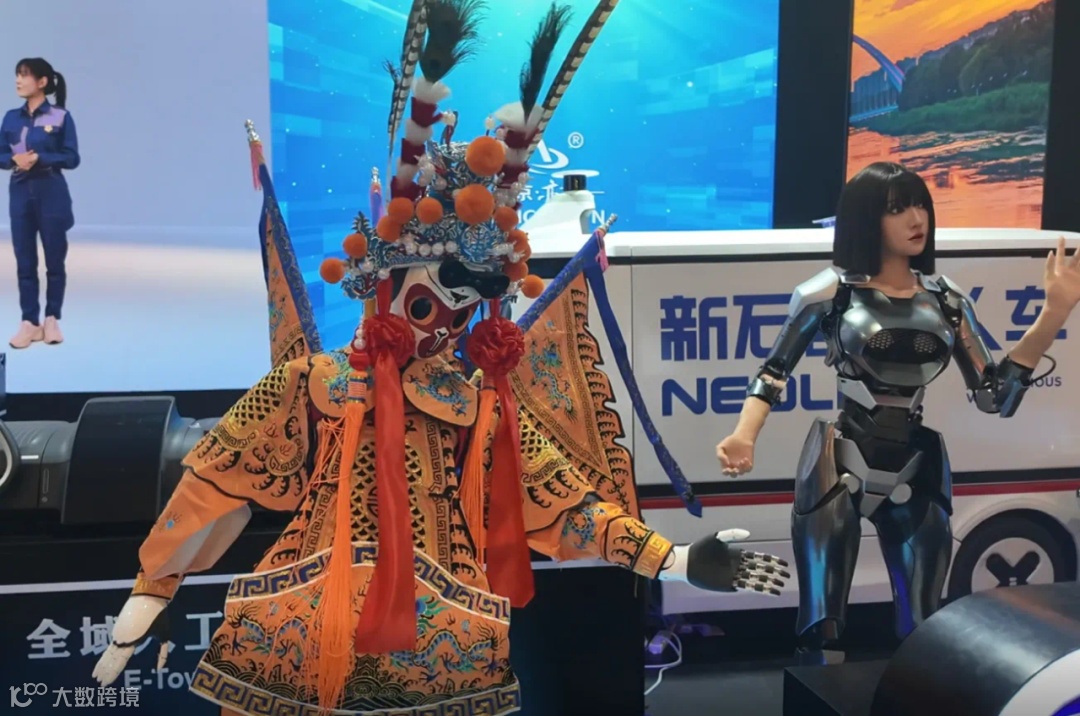 在美团展区,人形机器人化身药店店员,接收到订单信息后,自动移动至相应药品货架前,抬起手臂精准地从货架上取下一盒订单中的药品,再转身移动至打包台将药品放下。据介绍,这是美团买药与银河通用联合打造的全球首个人形机器人智慧药房解决方案,由具身大模型机器人Galbot完成24小时无人值守,完成取货、补货任务,未来有望与连锁药房合作。
