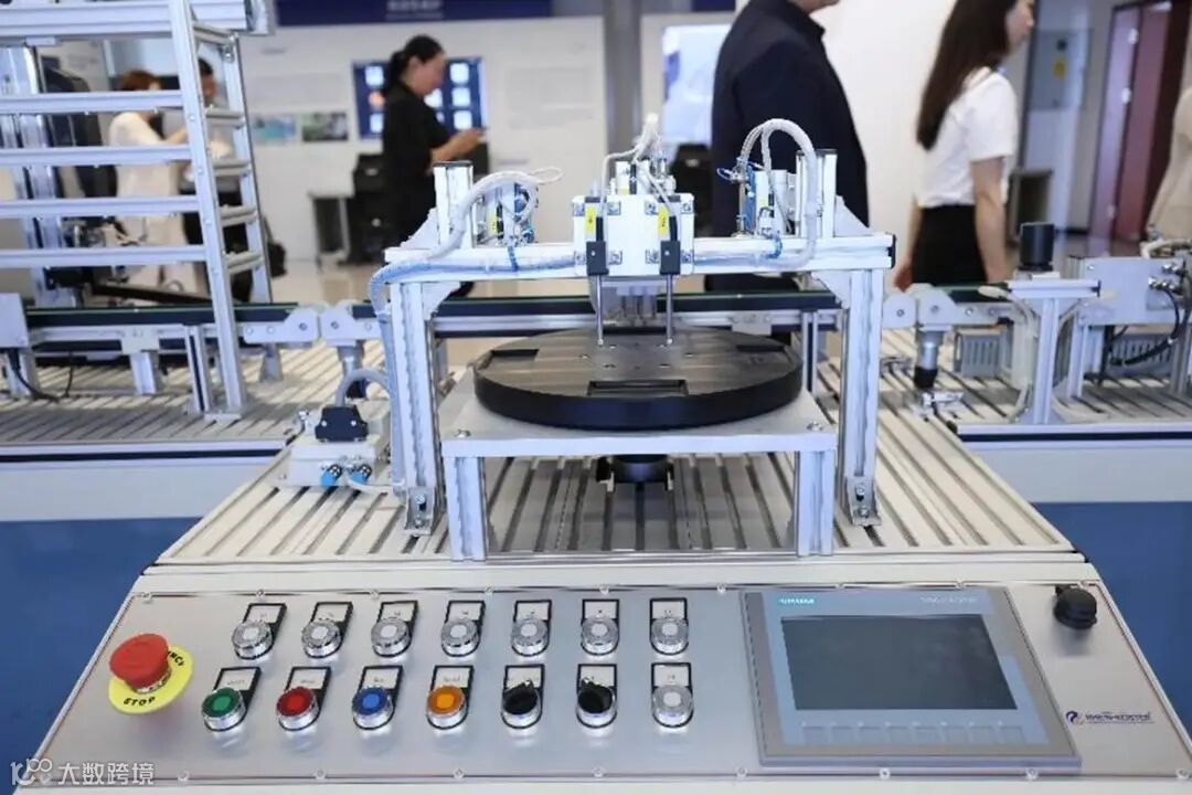 在考察园区环节,全球“双元制”教育领军企业——莱茵科斯特中国区运营总部展示了自动化工业生产场景,详细介绍了企业智能制造双跨创新中心建设、中德智能制造产教融合示范基地及人才资本银行三项发展理念。