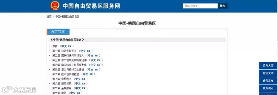 中韩自贸协定于2015年12月正式生效。2017年12月,两国签署谅解备忘录,正式启动中韩自贸协定第二阶段谈判。