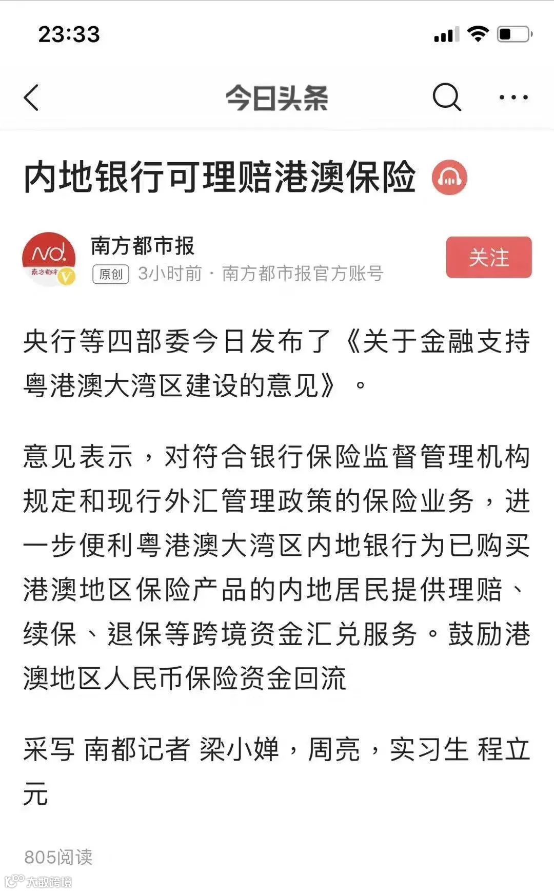 今日,粤港澳大湾区再登头版头条,央行等四部门发布金融30条,支持粤港澳大湾区建设,香港保险迎重磅利好。之前一直研究的【保险通】呼之欲出。