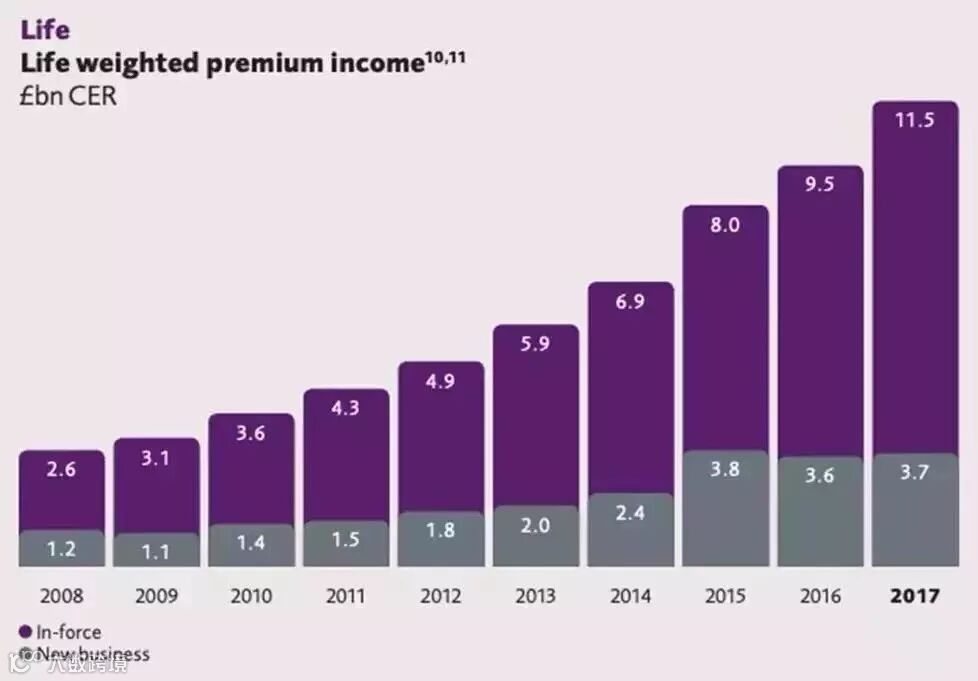 下面,让我们一起来看看来自保诚年报的数据,2017年,寿险累计加权保费收入超过了1.3万亿,并且,仅在香港,2018年上半年,保诚个人人寿的年度化保费已经超过700亿。