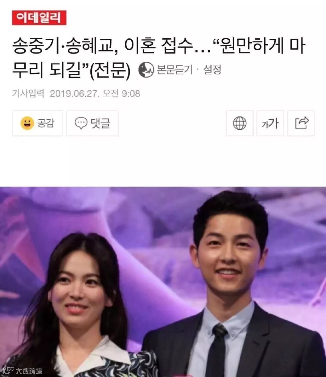6月27日上午,微博沸腾了,宋慧乔和宋仲基已协议离婚。
