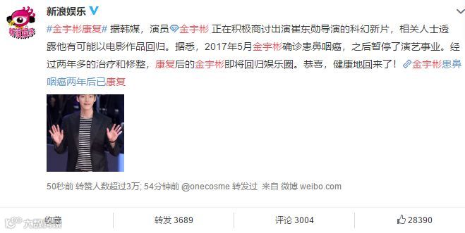 之前一段时间还被韩国媒体拍到和好友李钟硕一起出游的视频,经历了人生大起大落的金宇彬如今王者归来。希望金宇彬可以和胡歌一样为大家带来更多优秀的作品,希望经历从从困哪逃离病痛魔掌的金宇彬接下来的发展能够更加的顺利。