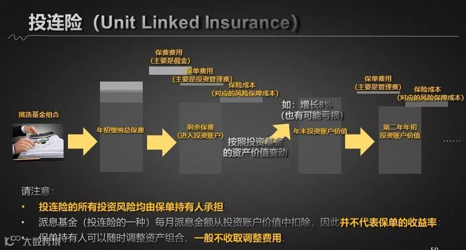 香港的投资连结保险保障功能很弱,一般只是保单价值的101%或105%,所以香港投连险也简称101、105。但投资连结保险的投资能力很强,一般提供给客户几十种或上百种全球投资基金。