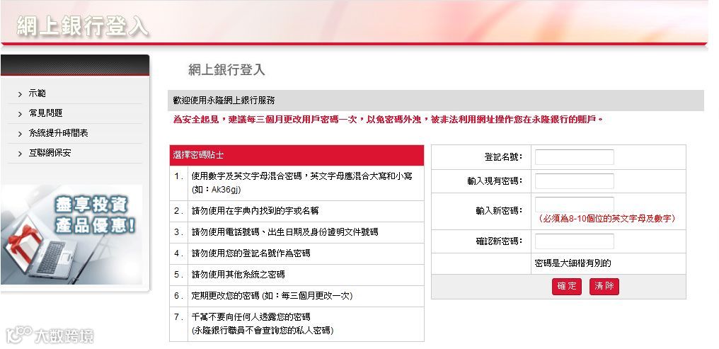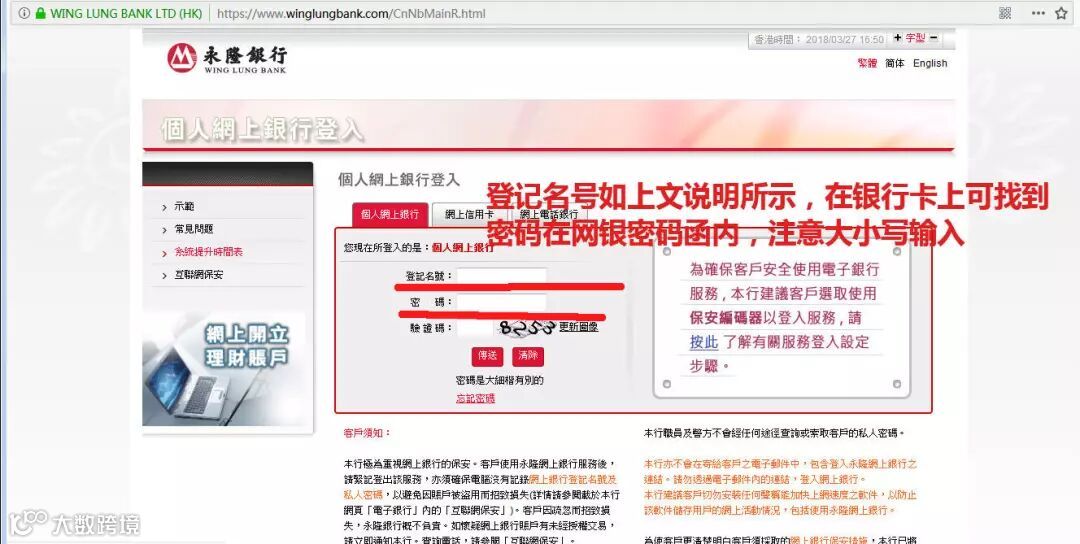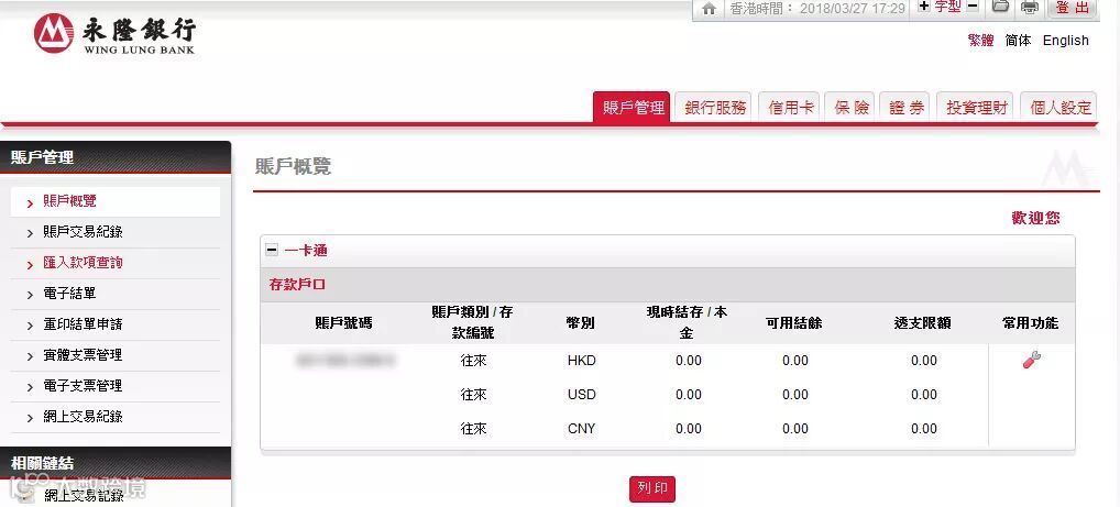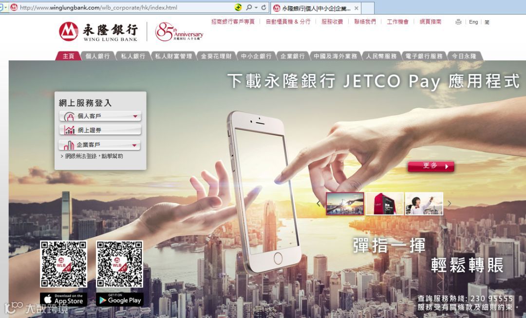 1.输入永隆银行网址 www.winglungbank.com,主界面如下: