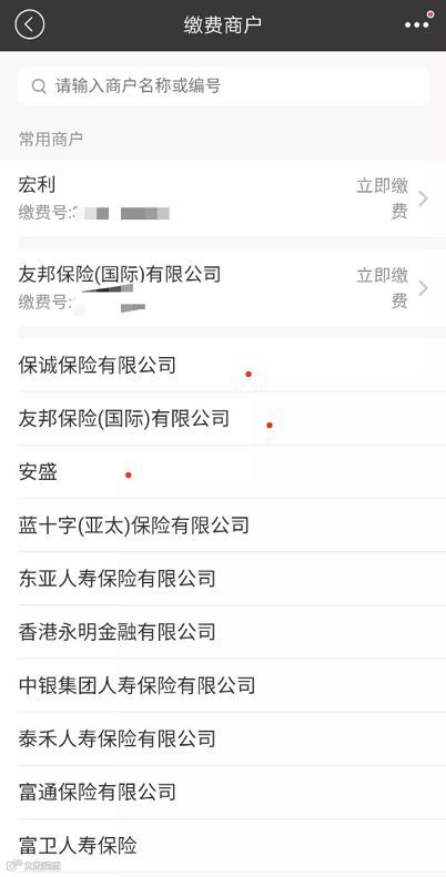 商户:“友邦保险(国际)有限公司”。(如缴纳其他保险公司保险则下拉菜单选择对应的保险公司)