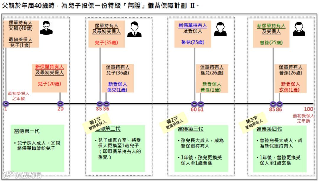 当Jackson已满19岁,Alan把保单的持有人转给他的孙子Jackson,将保单价值可以得以继续滚存。