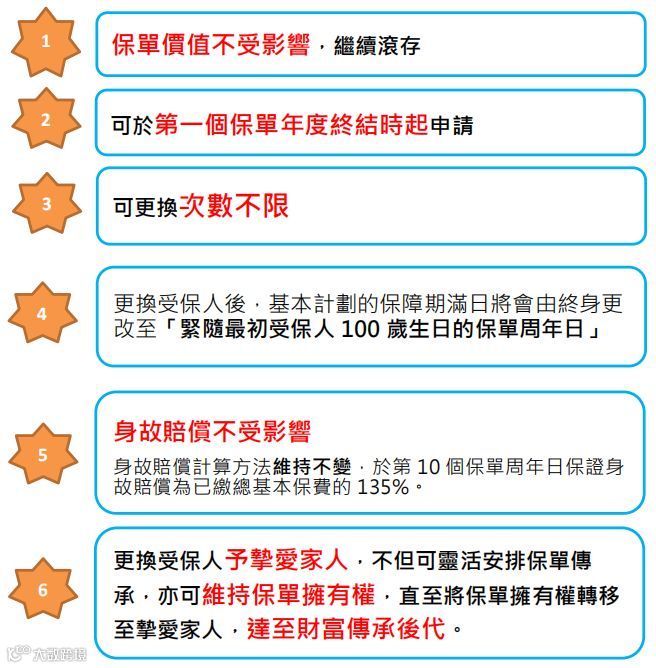 更换受保人需要等过了一个保单年度之后,同时新旧受保人都是在生的。