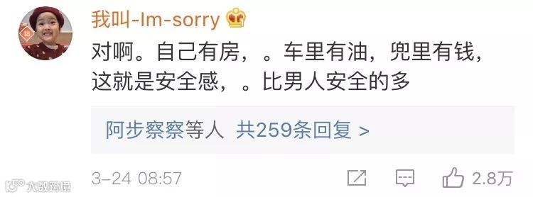 “对啊,自己有房,车里有油,兜里有钱,这就是安全感。”