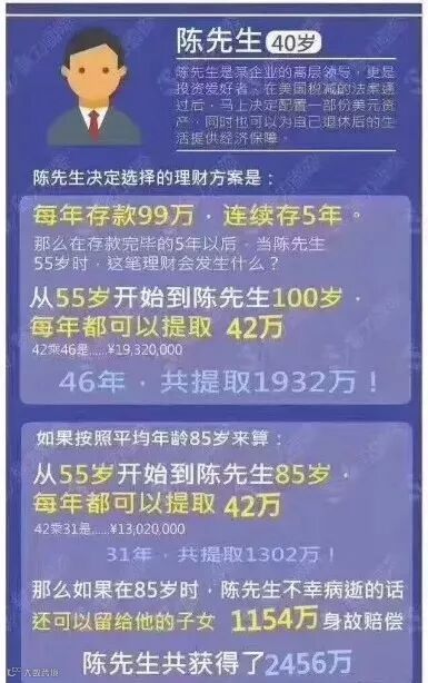 40岁每年投99万人民币,总共5年完成终身储蓄!提取详情见以下图片!
