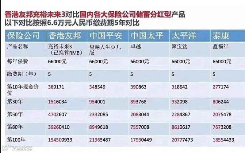 很多人会问,在内地也可以买商业养老保险金啊,为什么非要到香港保险公司去买呢,在同类产品中,香港友X的充裕X来3 有什么优势吗?仍然废话少说,用数据说话,来看看数据吧!