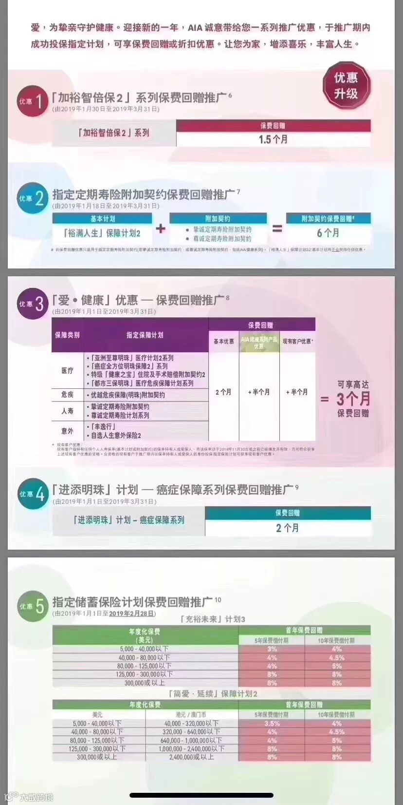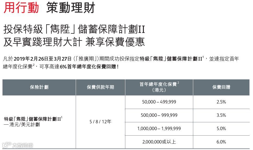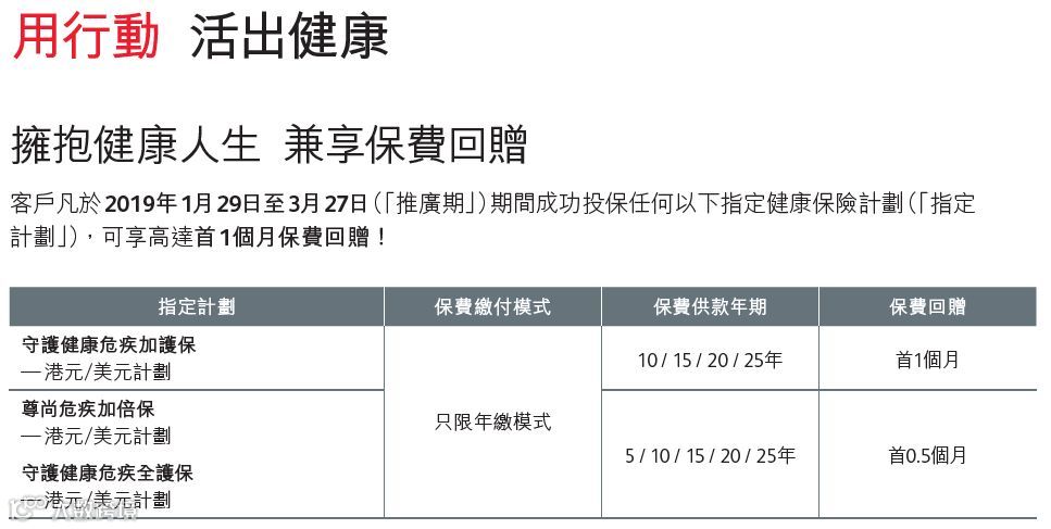 储蓄最高优惠8%,重疾最高优惠1.5个月,优惠截止日期2019年3月31日