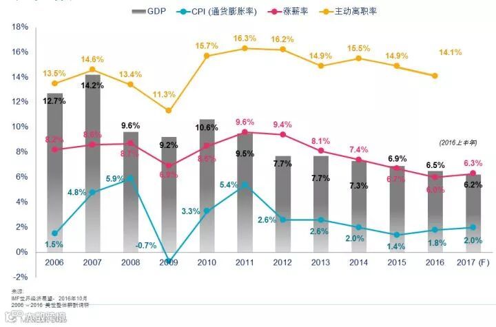 中国人民对通货膨胀和居民消费指数(CPI)并不陌生,在过去近10年间,除了2009年之外,CPI的增长几乎没有停过脚步。下图中蓝色折线就是CPI历年来的变化(当然,本图的可怕之处在于薪酬涨幅连续五年下滑,当然这个恐怖的故事我们节后再和大家分享)。